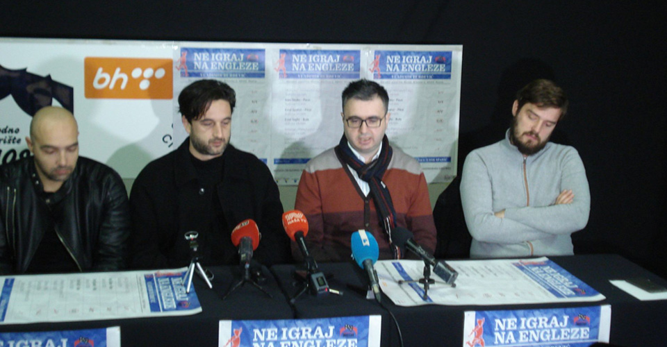 U petak, 1. 12. u 20 sati u Narodnom pozorištu Mostar premijerno će biti izvedena predstava “Ne igraj na Engleze” po tekstu Vladimira Đurđevića, u režiji Emira Spahića. Emir Spahić (koji igra Piksija), Ivan Skoko (Paun) i Emir Sejfić (Bule) u predstavi igraju tri prijatelja, tri kladioničara koji igraju na tri različita uloga – u jednoj noći i jednoj utakmici, otkrivaju se svi njihovi strahovi i sve njihove slabosti. “Ne igraj na Engleze” je komedija – crna komedija – koju će voljeti i kritika i publika, istaknuto je na današnjoj konferenciji za novinare u NPM-u ansambl predstave.