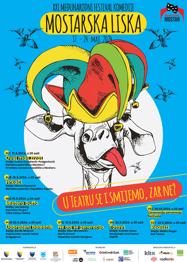 Za ovogodišnje 21. izdanje Međunarodnog festivala komedije „Mostarska liska“ od ukupno pristigle 41 prijave iz Bosne i Hercegovine, Srbije, Hrvatske i Crne Gore selektovano je sedam pozorišnih predstava komedijskog žanra.