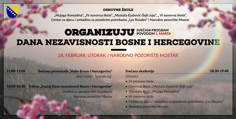 Svečanim kulturno-umjetničkim programom i tribinom pod nazivom "Značaj Dana nezavisnosti Bosne i Hercegovine" u utorak navečer je u Narodnom pozorištu Mostar nastavljen program obilježavanja Dana nezavisnosti BiH.